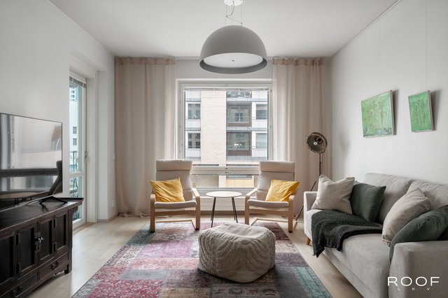 Tässä kolmannen kerroksen viihtyisässä huoneistossa pääset nauttimaan Kalasataman parhaista puolista aivan meren tuntumassa. Asunto tarjoaa kaiken, mitä modernilta kaupunkiasumiselta voi toivoa: taloyhtiön oman saunan, lasitetun parvekkeen sekä autohallin, johon kuljet kätevästi hissillä. Avoin pohjaratkaisu, toimivat säilytystilat ja valoisa kokonaisuus tekevät arjesta sujuvaa ja mukavaa.