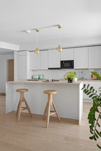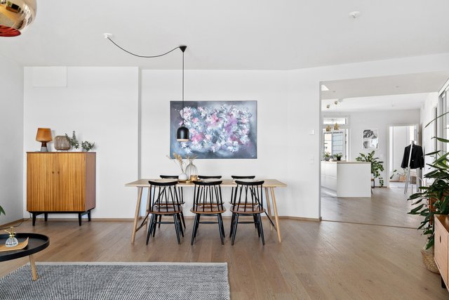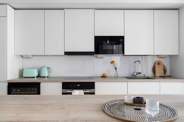 Moderni avokeittiö sulautuu tilaan saumattomasti, ja muutostyönä asennettu saareke nostaa keittiön käytettävyyden ja viihtyvyyden aivan uudelle tasolle. Integroidut kodinkoneet, viinikaappi ja laadukkaat materiaalit viimeistelevät kokonaisuuden. Keittiön vierestä pääset myös asunnon toiselle parvekkeelle sekä master bedroomiin.