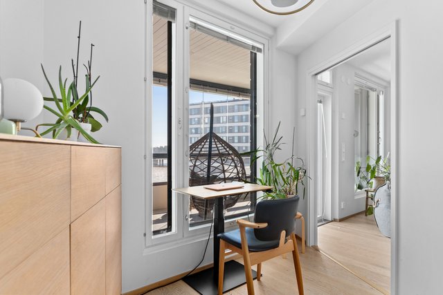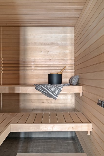 Kodin laadukas viimeistely näkyy kaikkialla: näyttävät laatat, kauniit saunatilat, erillinen wc, huippuluokan integroidut ratkaisut ja kauttaaltaan asennettu tammi-parketti. Makuuhuoneeseen on asennettu sähkökäyttöiset pimennysverhot, asunnossa on huoneistokohtainen ilmanvaihto, lattialämmitys sekä kesähelteille viilennys – asumismukavuus on viety viimeistä yksityiskohtaa myöten loppuun.