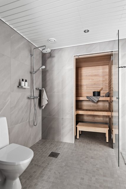 - WC-istuin, suihku, pesukoneliitäntä, ja lattialämmitys
