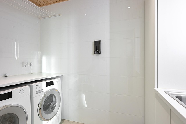 - Kokonaan laatoitetussa kodinhoitohuoneessa tason alla Mielen pyykinpesukone ja kuivausrumpu, pyykkikaappi, pesuallas ja allaskaapisto, lattiakaivo.