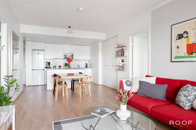 Modernia asumista Kruunuvuorenrannassa – Kolmio omalla saunalla ja parvekkeella