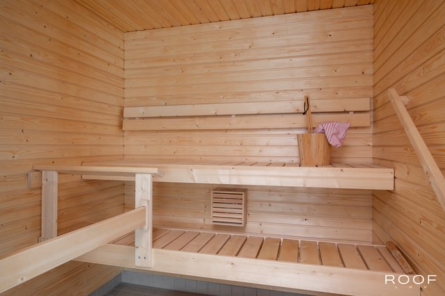 Tilavasta olohuoneen avokeittiön tilasta pääsee molempiin makuuhuoneisiin. Tämä koti yhdistää modernin asumisen ja luonnonläheisyyden ainutlaatuisella tavalla.