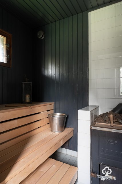 - Puukiuas, seinät panelia, lattia laatta,