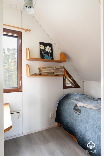- Seinät maalattu, lattia vinyylilankku. Alakerran makuuhuoneessa maalattu puu.
