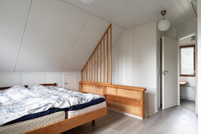 Mökki sijaitsee rauhallisella alueella, vain kivenheiton päässä merestä, mikä tekee siitä ihanteellisen paikan rentoutumiseen ja luonnosta nauttimiseen. Olohuoneesta on käynti lasitetulle terassille, jossa voi nauttia upeista maisemista ja rauhallisista hetkistä. Kolme makuuhuonetta tarjoavat tilaa perheelle tai ystäville, ja puusauna tuo lisäluksusta.