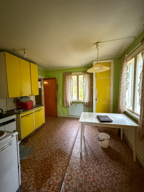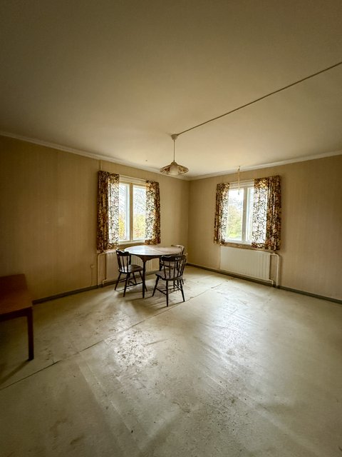 Myydään purkukuntoinen omakotitalo Kemiönsaaren Dragsfjärdissä, osoitteessa Dragsfjärdsvägen 1543B. Tämä 1949 rakennettu hirsitalo tarjoaa mahdollisuuden uudistaa ja rakentaa unelmiesi koti omalle tontille. Talo on kaksikerroksinen, ja siinä on neljä makuuhuonetta, joten tilaa riittää suuremmallekin perheelle.