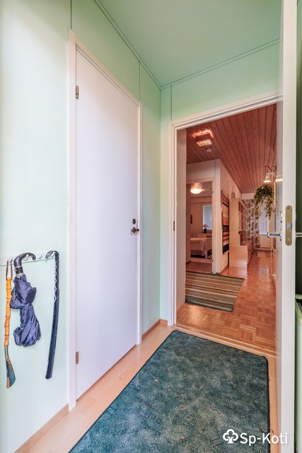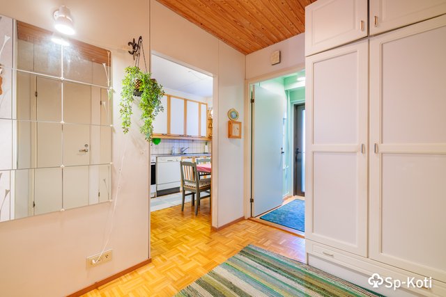 Tämä käytännöllinen saunallinen kaksio tarjoaa mukavan ja toimivan pohjaratkaisun arkeen – sopiva niin yksin asuvalle, pariskunnalle kuin pienelle perheellekin.