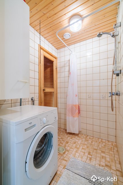 - Lattialämmitys, pesukoneliitäntä, ja suihku