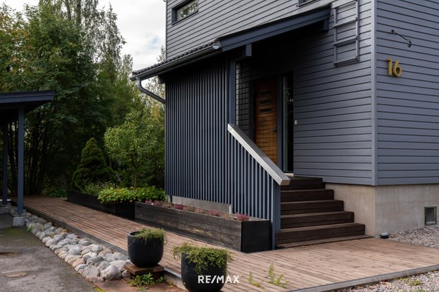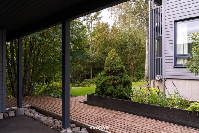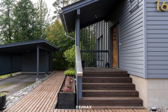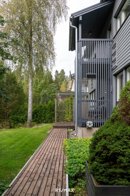 Pihapiiri on viihtyisä lähivirkistymisalueeseen rajoittuva kaunis kokonaisuus. Puiset kulkuväylät, kivetykset ja valmiit istutuslaatikot tekevät pihasta siistin ja helppohoitoisen. Suojaiselle terassille paistaa aurinko iltapäivän aikaan, ja parvekkeen suunta on etelään / lounaaseen. Autokatoksen yhteydessä on pieni lämmitettävissä oleva varasto sekä sähkökeskus, mikä mahdollistaa esimerkiksi sähköauton latausasemalle varautumisen.