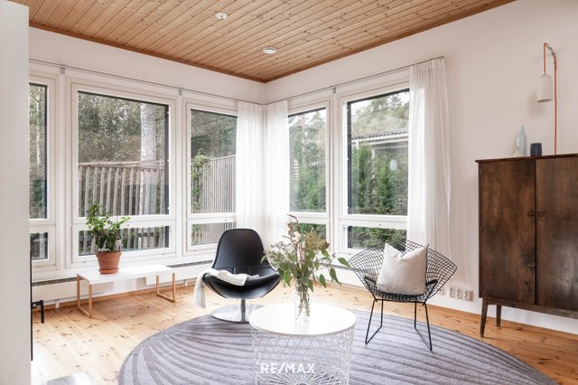 Sijainti Haikkoossa on monelle se ratkaiseva juttu. Talon tontti rajautuu lähivirkistysalueeseen Ebban tien ulkokehällä, mikä tuo luonnon lähelle ja pihatilaan rauhan. Merenlahdet ovat kävelymatkan päässä ja venelaituri noin 500 metrin etäisyydellä. Muistutuksena vielä, että tämä talo seisoo OMALLA tontilla, joka ei ole alueella itsestäänselvää.