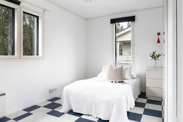 Ei sovi unohtaa, että kaikki talon 4 hyvänkokoista makuuhuonetta sijaitsevat yläkerrassa, jolloin alakerran elämisen äänet eivät häiritse yöunia ja näin ollen tarjoutuu mahdollisuus yksityisyyteen ja rauhaan. Yläkerran aulaan rakentuu helposti vaikka työpiste tai pieni kirjastonurkka. Säilytystilat on mietitty järkevästi: vaatehuone, kaapistot, kylmä ulkovarasto sekä toinen vaatehuone tuulikaapin yhteydessä pitävät tavarat järjestyksessä.