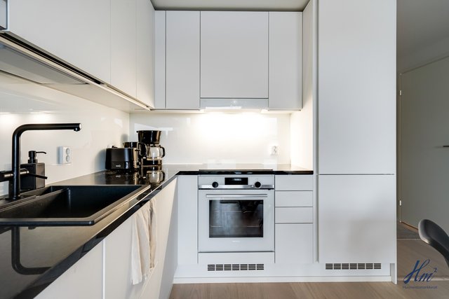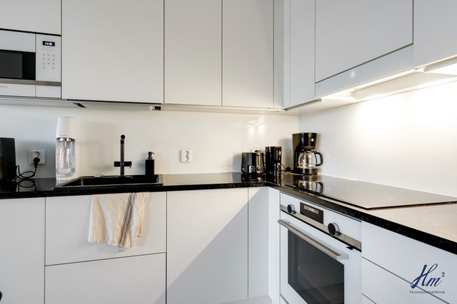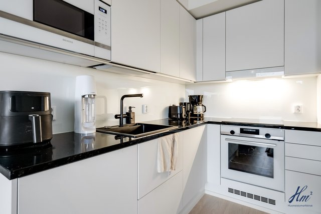- Siemensin kodinkoneet: Jääkaappipakastin, induktiotaso, kalusteuuni, valaisimella varustettu liesikupu, integroitu astianpesukone ja integroitu mikro. Lattia kovetettu puulattia, seinät maali ja katto tasoite/maali.