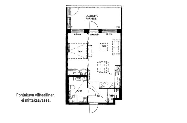 2h+k+ph/wc+lasitettu parveke