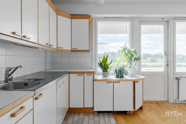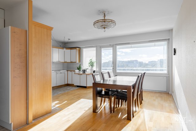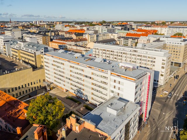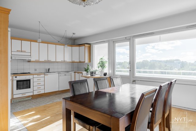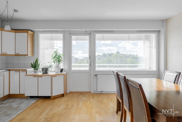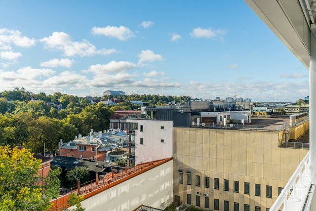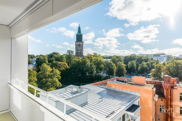Olohuoneesta, keittiöstä ja erityisesti parvekkeelta aukeaa mitä upein katsaus Turkua. Kattojen yli kauaskatseista maisemaa koristaa muun muassa Aurajoen vehreät puistolehmukset, Tuomiokirkko, Bibliotheca ja Tähtitorninmäki. Tässä läpitalon kulkevassa asunnossa on kaksi parveketta, edellä mainittu kaakkoon ja toinen luoteeseen Eerikinkadulle.