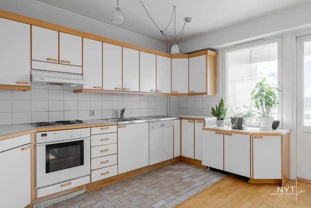 - Jääkaappi, erillinen pakastin (Termostaatti rikki), erillisuuni, liesi, liesituuletin, ja astianpesukone (Epäkunnossa)