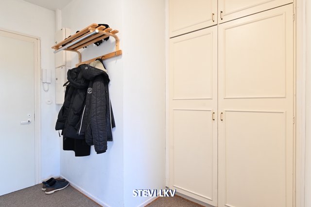 - Eteisessä on laattalattia, naulakko ja kaapisto.