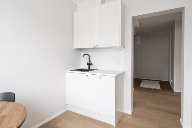 Keittiö on varustettu runsaalla kaappitilalla sekä laadukkailla, integroiduilla kodinkoneilla. Kodikas tunnelma jatkuu valoisaan olohuoneeseen, jossa on hyvin tilaa sohvaryhmälle ja oleskeluun. Makuuhuone tarjoaa rauhallisen ympäristön lepoon sekä mahdollisuuden myös työpisteelle. Kylpyhuone on remontoitu vuonna 2024 vastaamaan nykypäivän vaatimuksia.