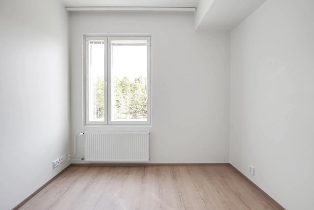 - Olohuoneen lattia on parkettia, seinät maalatut. Kulku lasitetulle parvekkeelle.