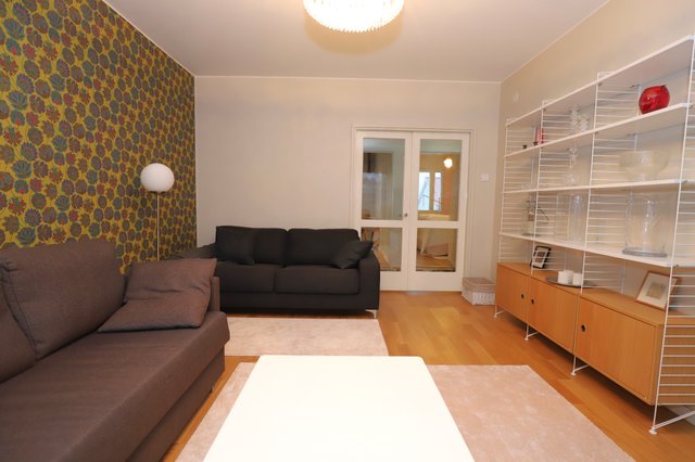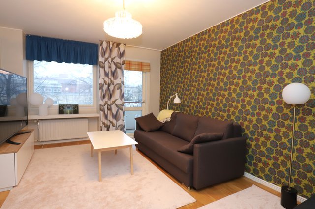 - Keittiö ja makuuhuone Eino Leinon kadulle ja olohuone sisäpihalle