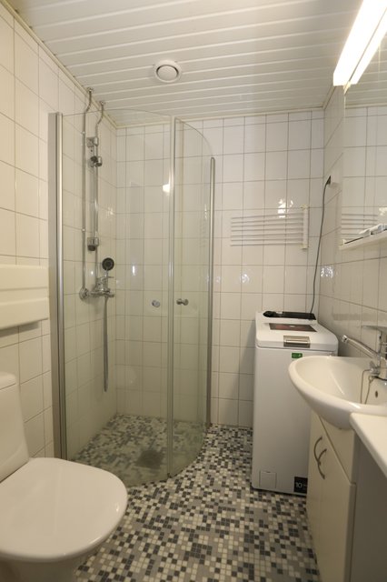- Pesutila uusittu linjasaneerauksen yhteydessä v. 2006, jolloin laitettu nykyaikaiset vedeneristeet ja vesikalusteet uusittu. Pesutilaan mahtuu pesukone.