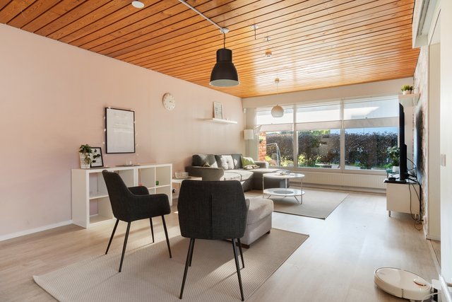 Myynnissä tilava ja hyvin pidetty omakotitalo rauhallisella alueella. Tämä tiili-ja puuverhoiltu koti sijaitsee omalla 693 m²:n tontilla ja tarjoaa erinomaista asumismukavuutta niin perheelle kuin pariskunnallekin.