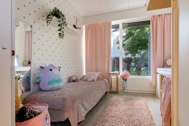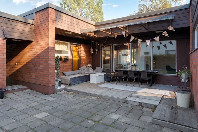 Erityisenä helmenä toimii suojaisa atrium-piha, joka tarjoaa yksityisyyttä ja mahdollisuuden nauttia ulkoilmasta omassa rauhassa. Pihapiiri on helppohoitoinen, sopivan kokoinen ja tarjoaa tilaa niin oleskeluun, lasten leikeille kuin viherpeukalollekin.