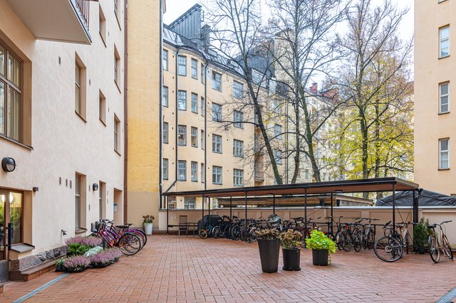 - Keskeinen sijainti Taka-Töölössä. Vierestä löytyvät kulttuuritehdas Korjaamo, Töölön kisahalli sekä oopperatalo ja Olympia-stadion. Lähellä on myös keskuspuisto, Helsingin jäähalli ja lukuisia ravintoloita sekä muita palveluita. Kulkuyhteydet ovat läheisen Mannerheimintie ansiosta erinomaiset ja autolla pääsee niin ikään liikkumaan kätevästi.