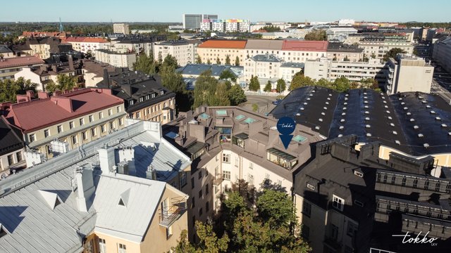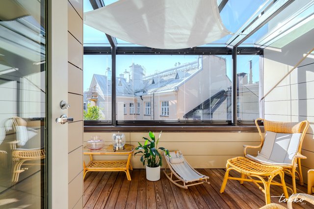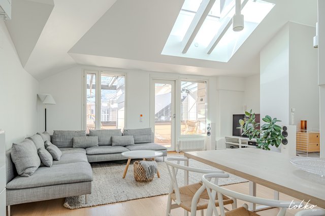 Hulppea 78m2 omalla isolla terassilla varustettu ullakkoasunto Töölössä.