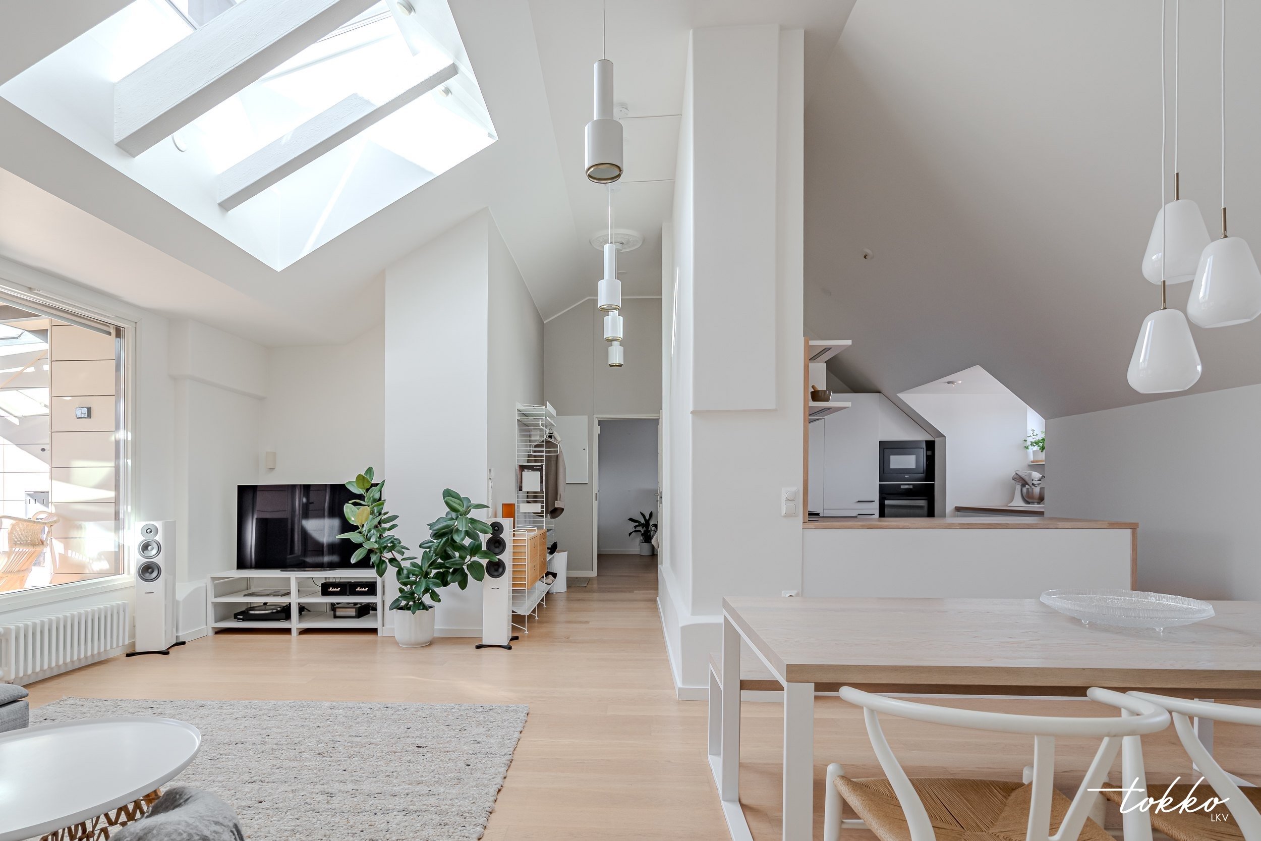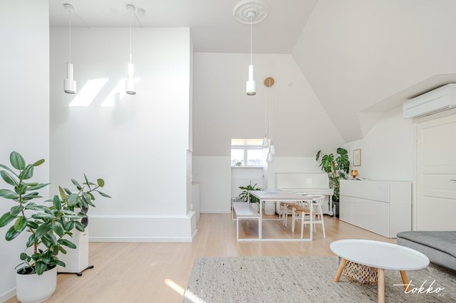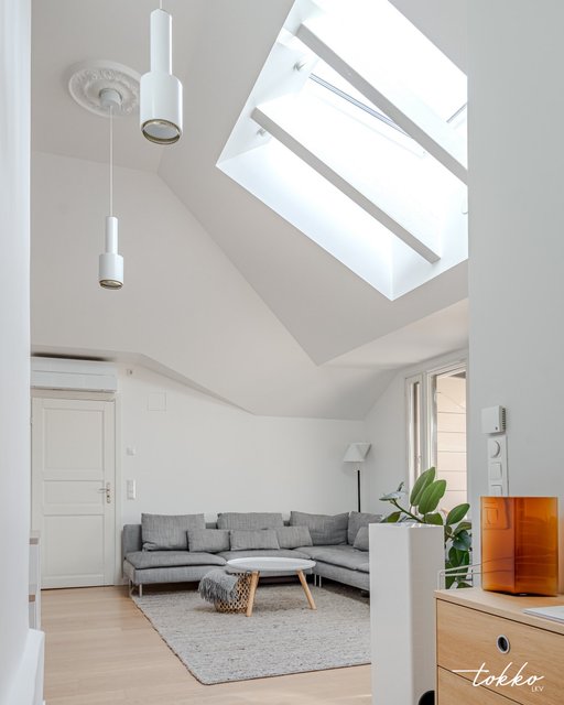 *78 m² ullakkohuoneisto kattojen yllä