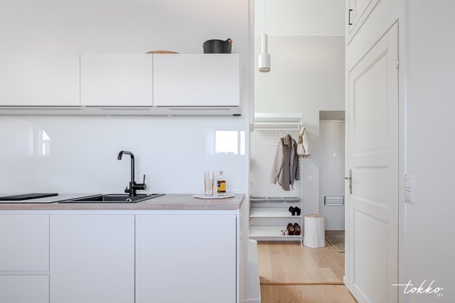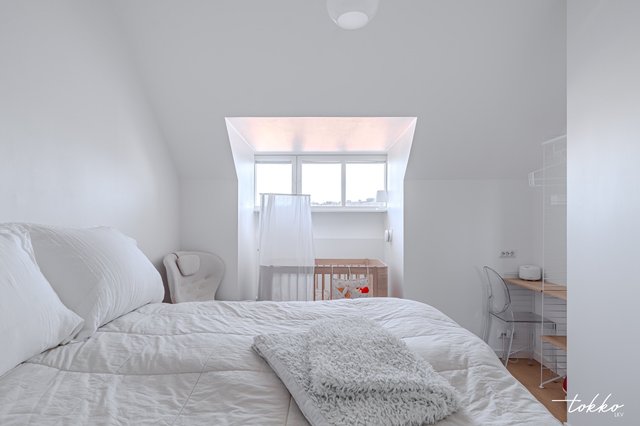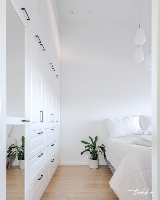- Huoneistossa on yksi makuuhuone, jossa on kattoon saakka rakennetut vaatekaapit ja kätevästi tilaa esimerkiksi työ/meikkipöydälle, koiran pedille tai lapsen pinnasängylle.