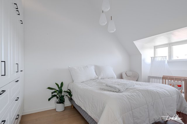 Olohuone ja ruokailutila muodostavat yhtenäisen ja avaran oleskelutilan, jossa on tilaa niin arkeen kuin juhlaan. Olohuoneesta löytyy lisäksi viilentävä ilmalämpöpumppu kesän helteille. Makuuhuone sijaitsee omassa rauhassaan huoneiston päädyssä, tarjoten loistavat puitteet levollisille unille. Makuuhuoneessa on myös hyvin tilaa esimerkiksi työpisteelle, koiran pedille tai vaikka pienen lapsen pinnasängylle. Erityisen fiksusti suunnitellut kattoon saakka ylettyvät vaatekaapit tarjoavat myös runsaasti säilytystilaa.
