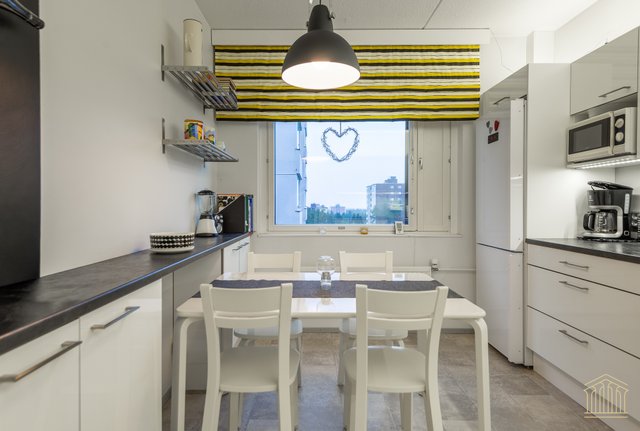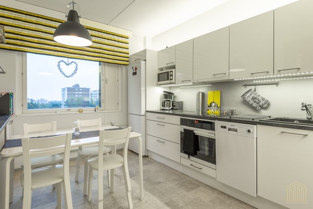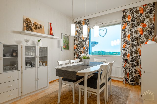 Asunnon pohjaratkaisu on toimiva ja vastaa erinomaisesti niin perheen kuin tilaa arvostavan pariskunnan tarpeisiin. Olohuoneessa on tilaa ja viihtyisyyden kruunaa kaunis maisema kuudennesta kerroksesta. Lasitettu parveke tuo asumismukavuutta. Keittiössä on hyvin työskentelytilaa. Makuuhuoneet ovat varusteltu liukuovikaapistoilla ja mukavan kokoisia sekä helposti muunneltavissa erilaisiin tarpeisiin. Kylpyhuone on siisti ja tilava, jonka lisäksi on vuonna 2020 tyylikkäästi remontoitu erillinen wc. Asunnossa on panostettu säilytysratkaisuihin, sillä erillisen vaatehuoneen lisäksi eteisessä on kaapistot.