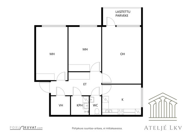 3 h, k, kph, erill. wc, vh, las. parveke