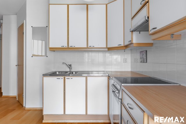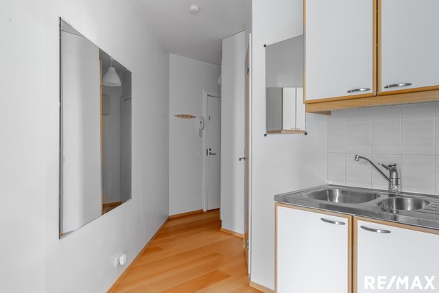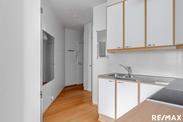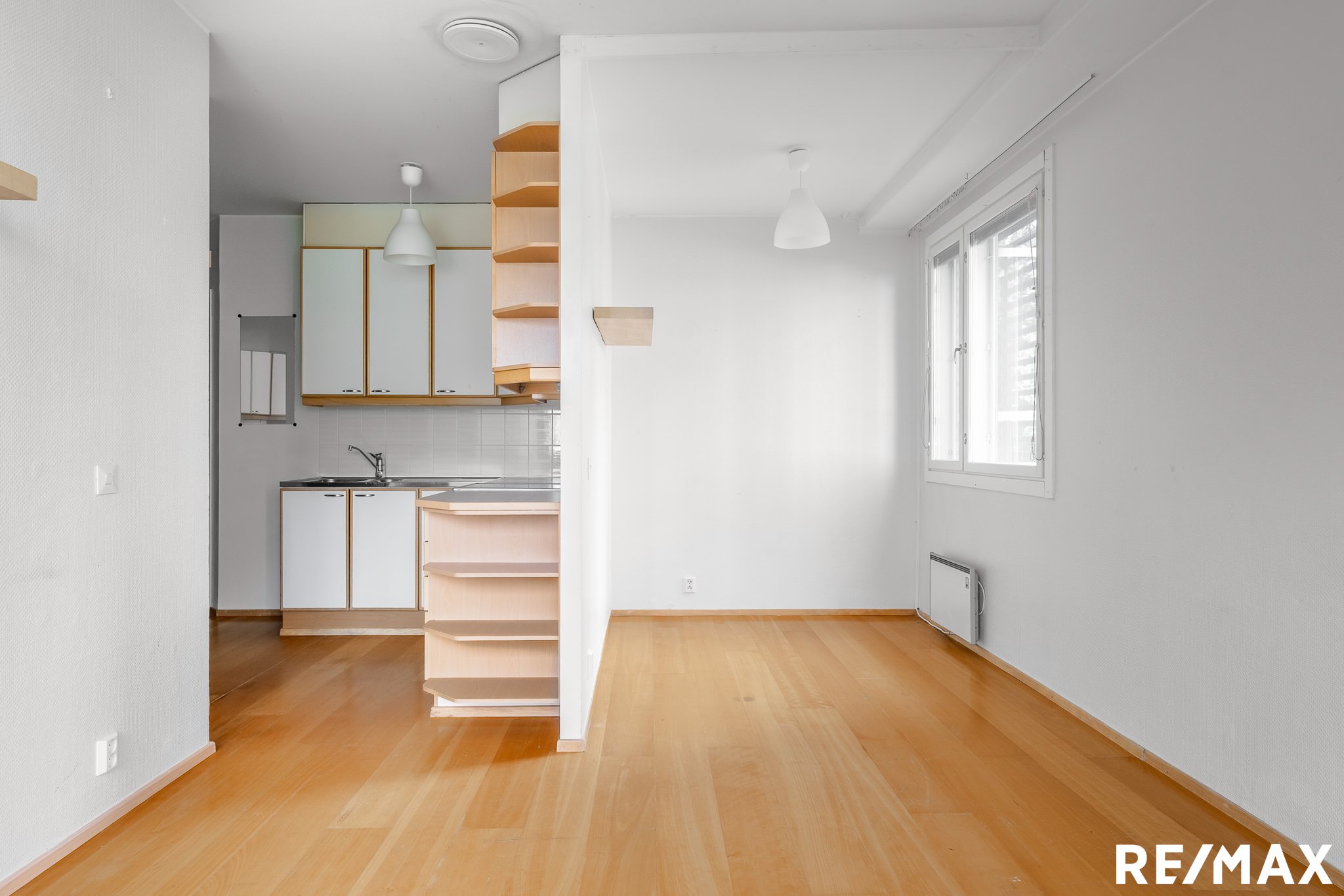 Asunnossa on parkettilattia ja vaaleat maalatut seinät. Keittiössä on kaikki arkeen tarvittava, sekä sopivasti laskutilaa asunnon kokoon nähden. Kylpyhuoneessa on pesukoneliitäntä ja laatoitettu lattia, mikä helpottaa arjen askareita. Kylpyhuoneen saneeraus alkamassa yhtiön toimesta lähikuukausien aikana.
