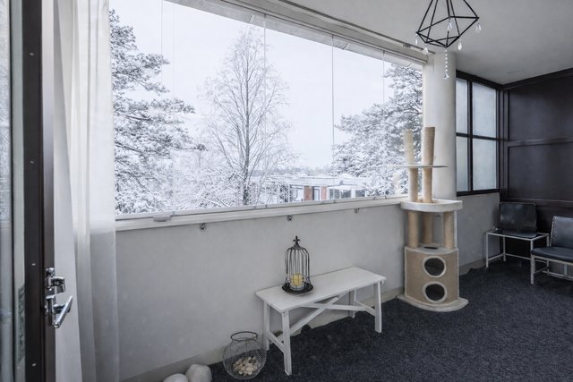 Kodin sydän on tilava olohuone, josta on käynti lasitetulle parvekkeelle. Parveke avautuu lounaaseen, joten voit nauttia auringonpaisteesta ja kauniista näkymistä. Keittiö on remontoitu vuonna 2015 ja varustettu laadukkailla Siemensin kodinkoneilla sekä Avintagen viinikaapilla. Makuuhuoneet ovat viihtyisiä ja niissä on kauniit tehostetapetit.