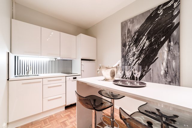 - Jääkaappi, liesi, liesituuletin, ja astianpesukone