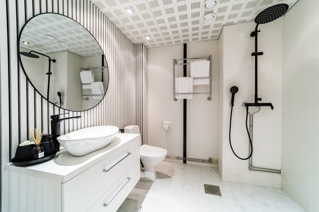 - WC-istuin, suihku, lattialämmitys, peili, allaskaappi, ja bidee-suihku