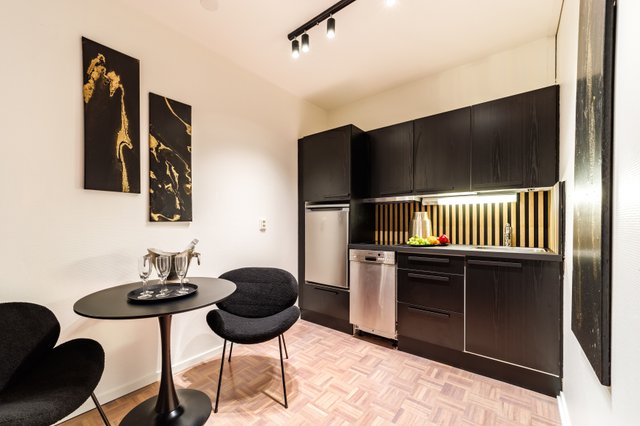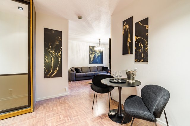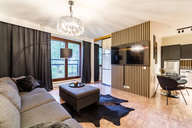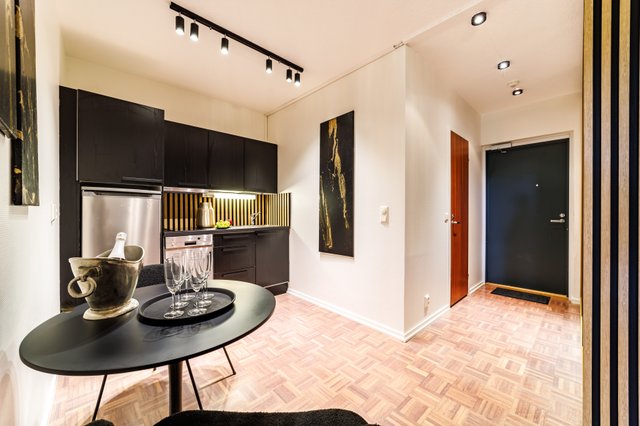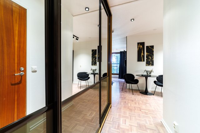 Kaksio sijaitsee talon ensimmäisessä kerroksessa, ja sen tilaratkaisut on suunniteltu käytännöllisiksi. Olohuoneen ja keittiön parkettilattiat tuovat sisustukseen lämpöä ja viihtyisyyttä. Virallisen makuuhuoneen lisäksi asunnossa on rakennettu toinen makuu-alkovi, mikä mahdollistaa jopa kuuden hengen majoittumisen mukavasti. Kylpyhuoneessa on lattialämmitys, joka lisää arjen mukavuutta ja tuo ripauksen luksusta. Asunto myydään kalustettuna. Asunnon käyttö helppoutta lisää etäohjattavat numerokoodilukot ulko ovessa.