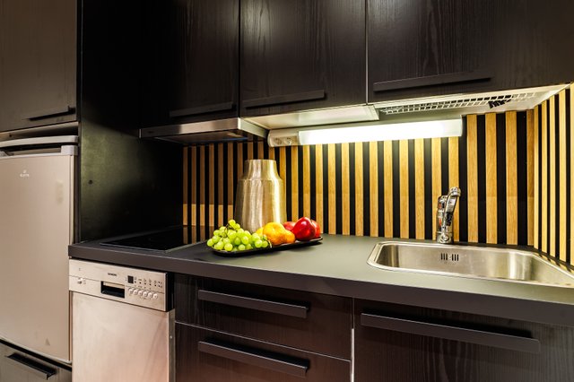 - Jääkaappi, liesituuletin, astianpesukone, ja keittoliesi