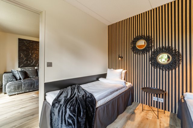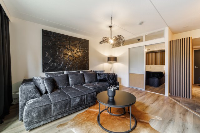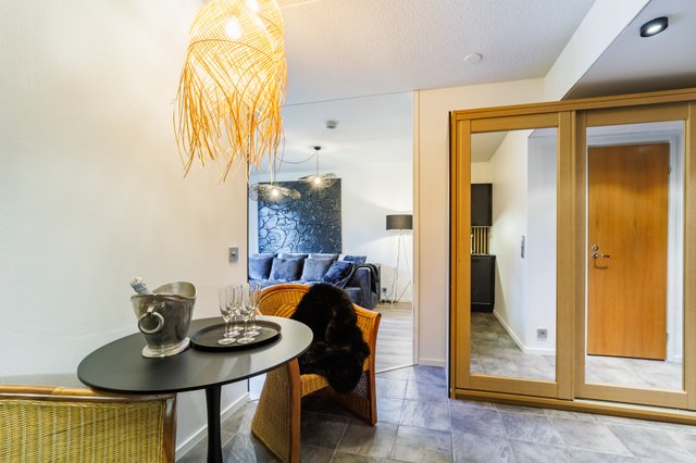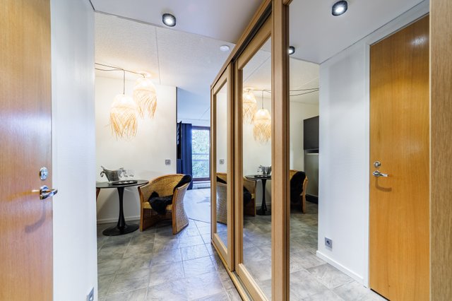 Kaksio sijaitsee talon toisessa kerroksessa, ja sen tilaratkaisut on suunniteltu käytännöllisiksi. Virallisen makuuhuoneen lisäksi asunnossa on rakennettu toinen makuu-alkovi, mikä mahdollistaa jopa kuuden hengen majoittumisen mukavasti. Kylpyhuoneessa on lattialämmitys, joka lisää arjen mukavuutta ja tuo ripauksen luksusta. Asunto myydään kalustettuna. Lisäksi asunnon käyttöhelppoutta lisää etäohjattava numerokoodilukot ulko-ovessa.