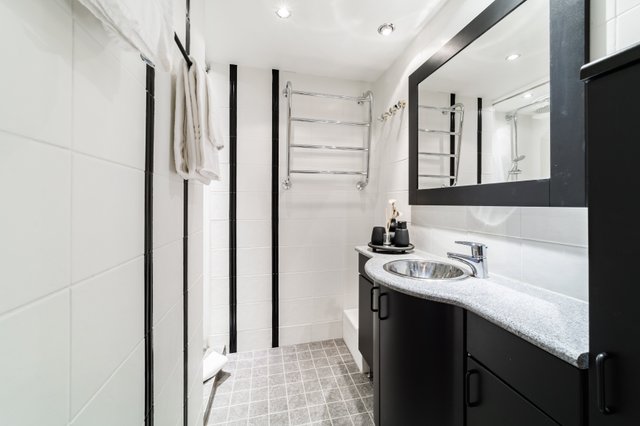 - WC-istuin, suihku, peili, allaskaappi, bidee-suihku, ja lattialämmitys