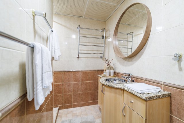 - Suihku, lattialämmitys, peili, allaskaappi, ja bidee-suihku