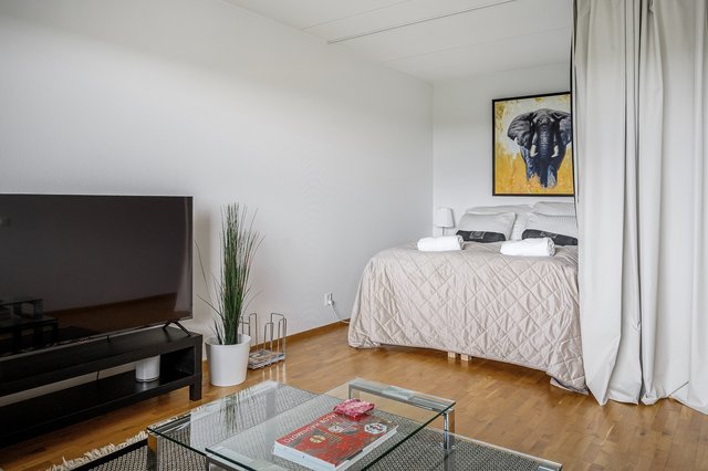 - Huoneistossa on yksi asuinhuone, johon eteisen kaapistoseinä muodostaa hyvän alkovin esim. makuuhuoneeksi. Olohuoeen ulkoseinällä on suuri ikkuna sekä käynti lasitetulle parvekkeelle. Olohuoneen seinät ovat maalatut ja lattia on parkettia.