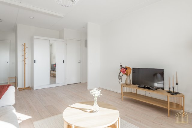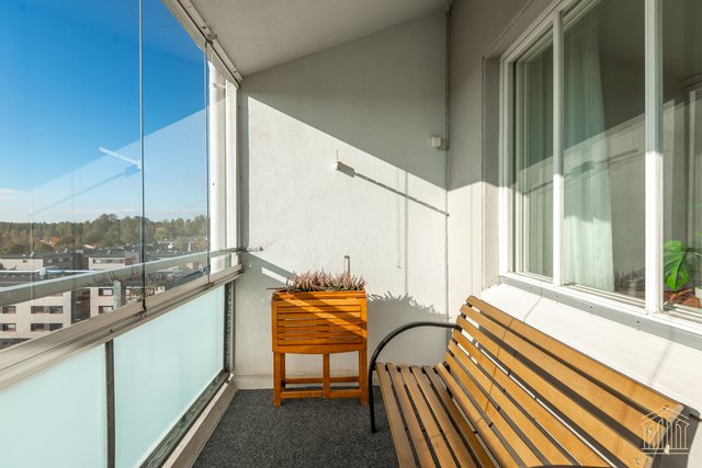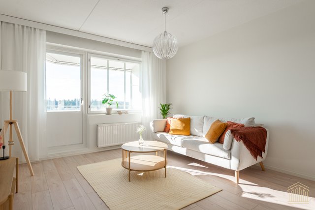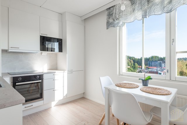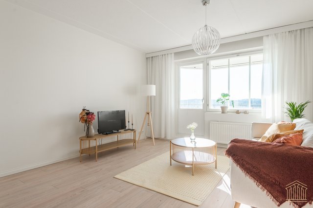 Asunnon pohjaratkaisu on käytännöllinen. Keittiö on remontoitu ja kompakti, tarjoten riittävästi tilaa ruuan laittoon ja ruokailuun. Asunnon valoisasta olohuoneesta on kulku kodin lasitetulle parvekkeelle, josta avautuvat todella upeat näkymät.