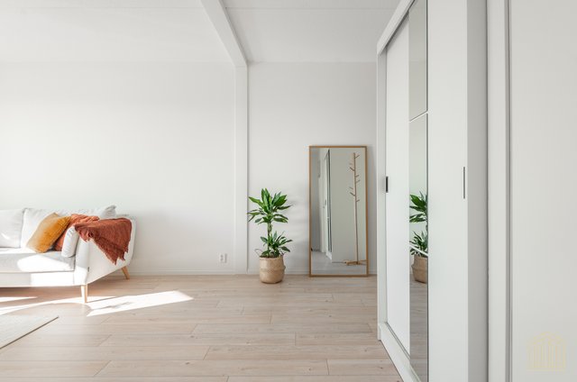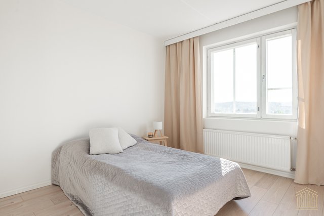 Olohuoneen toiselle puolen sijoittuu asunnon tilava makuuhuone, josta löytyy säilytystilaa liukuovikaapistojen muodossa. Tästä kodista löytyy myös oma sauna, missä on ihana nauttia rentouttavat löylyt aina kun itselle sopii. Koti on remontoitu kylpyhuonetta lukuunottamatta kauttaaltaan 2025. Kylpyhuone on remontoitu v.2023.