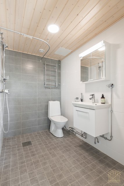 - WC-istuin, suihku, lattialämmitys, bidee-suihku, allaskaappi, pesukoneliitäntä, peili, pesuallas, ja suihkuseinä