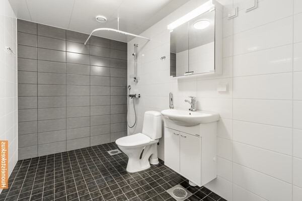 - Pesukoneliitäntä, lattialämmitys, peilikaappi, wc-istuin, ja suihku