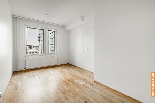 Tilava laatoitettu kph. Suuri makuuhuone ja vaatehuone. Yhdistetty keittiö/olohuone, josta käynti lasitetulle parvekkeelle.