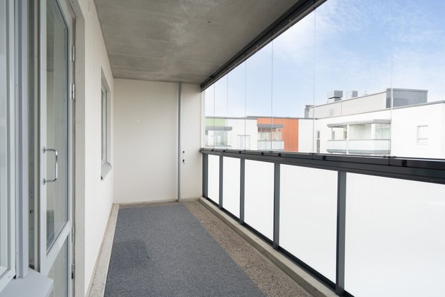 Iso lasitettu parveke toimii mainiosti lisähuoneena ympäri vuoden – olipa kyseessä rentoutuminen kesäauringossa tai tunnelmallinen paikka syksyn ripusteluille. Parveke on täydellinen tila nauttia aamukahvista tai kokea auringonlaskut rauhassa.